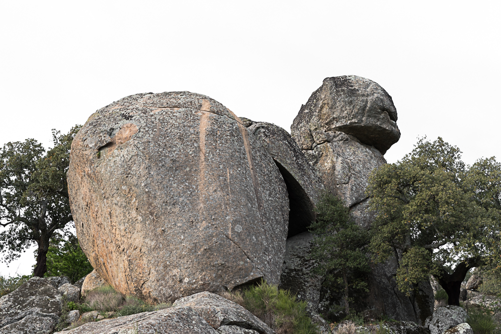 Los episodios de calima de 2021 han afectado a casi todas las regiones de la península ibérica, pero de forma especial a Extremadura. Los peñascos de granito que salpican el paisaje de la dehesa Extremeña, conocidos coloquialmente como canchos, se erigen como monstruosas estatuas sobre el telón mortecino, mirando con orgullo al cielo mate e infinito que crea la calima.